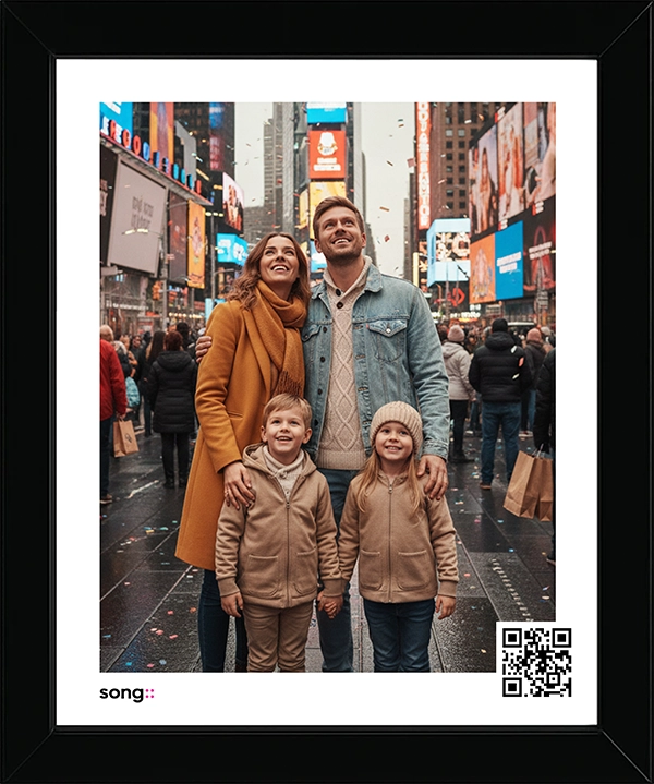 Riceverai un’elegante quadro con la tua foto, un QR code unico e una canzone scritta su misura per voi.